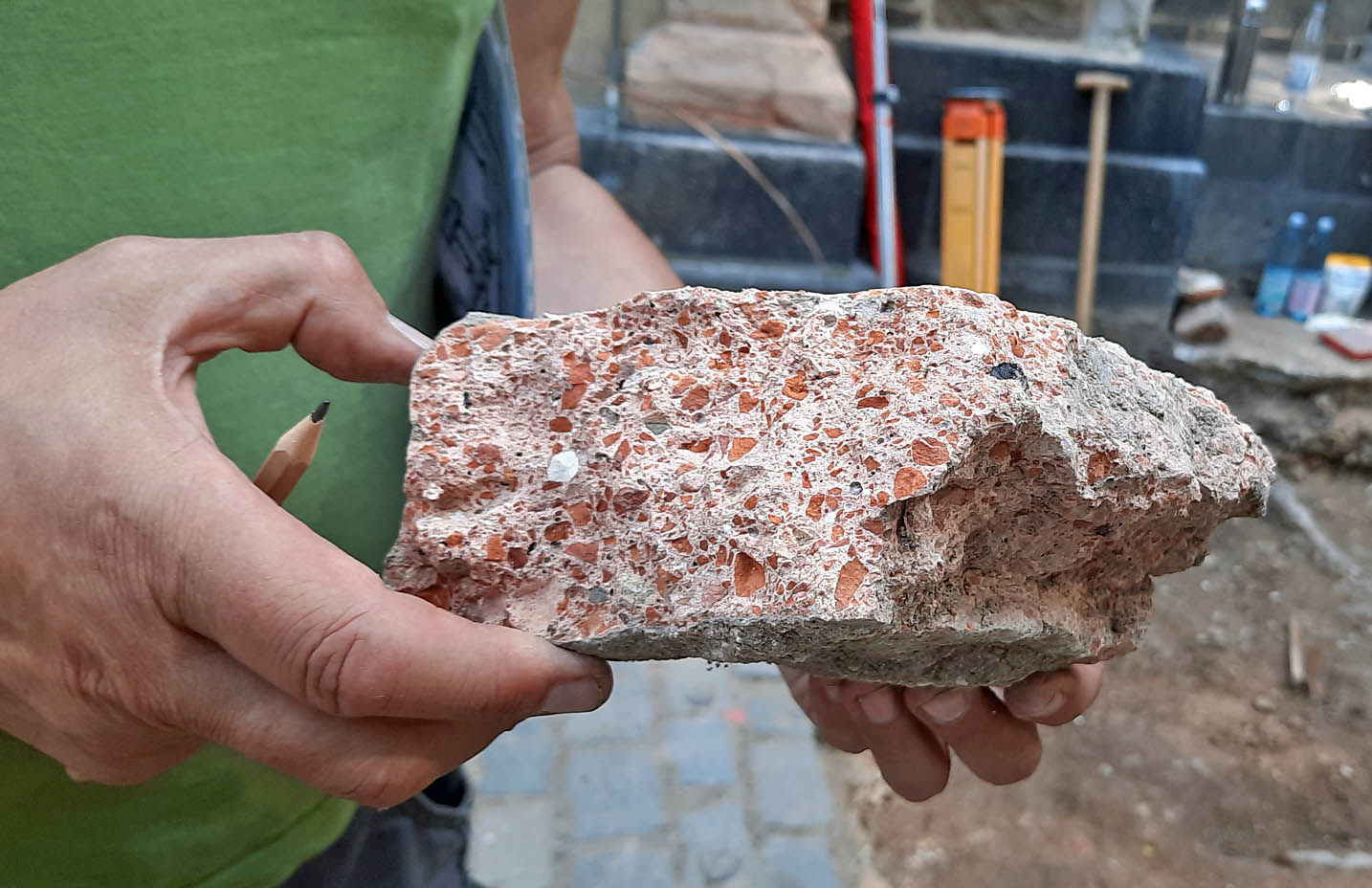 Bei der Freilegung der Sarkophage tauchten auch Stücke römischen Mauerwerks auf, das üblicherweise als Fußboden verbaut wurde. Dieser Mörtel enthält üblicherweise Ziegelsplitt. Brocken davon waren zur Verfüllung der großen Gruben rund um die Sarkophage verwendet worden. Möglicherweise stammen sie aus den Ruinen der Villa Rustica, die etwa 20 Meter südöstlich des Bestattungsareals gestanden hatte.
